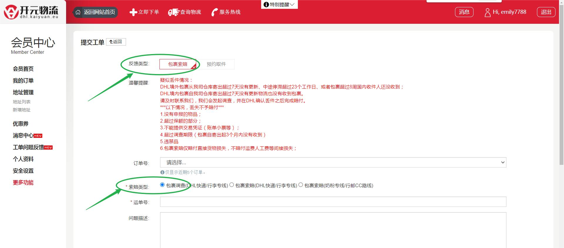 2. 包裹是否丢失要由DHL调查之后判定。若是DHL反馈包裹丢失,则会自动开启DHL申请索赔流程;