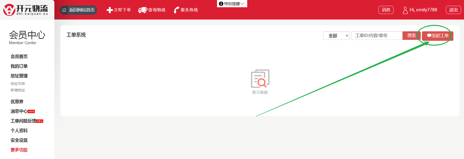 2. 点击“发起工单”